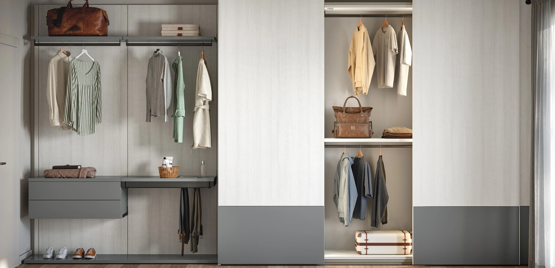 Contattaci e scopri di più sulla nostra linea di Arredamento Casa: sarai in grado di completare la camera da letto potendo usufruire di una diversificata offerta di contenitori moderni, come l'armadio in melaminico nell'immagine. Per progettare perfettamente una stanza funzionale ed esteticamente gradevole, opta per le più originali soluzioni dei migliori brand, letti, armadi e comodini di grande design. Cabina Armadio a cremagliera 08E di Cinquanta3: compila il form per ricevere informazioni di ogni genere e consigli per progettare la camera che hai sempre voluto.
