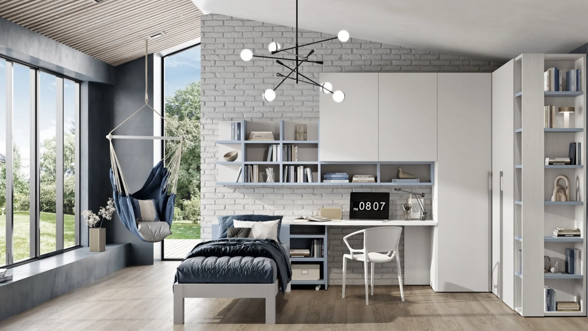 Porta design e colori vivaci nella stanza dedicata ai più piccoli con questa soluzione, una delle Camerette componibili per bambini di Ferrimobili. Se cerchi idee creative per arredare ottimamente la stanza dei tuoi figli, ti presentiamo la Cameretta 130 di Ferrimobili con finitura in melaminico. Nell'arredo della stanza dei piccoli affidati a noi: nel nostro showroom presentiamo tutte le più originali composizioni arredative moderne per la loro camera. Questa proposta in melaminico ultima ottimamente le doti pratiche e l'estetica della camaretta, in quanto è capace di coniugare funzionalità ed ergonomia. Ferrimobili propone una ricca gamma di accessori da accostare su misura: troverai letto, armadio o cabina armadio, tavolo da lavoro, sedie e librerie.