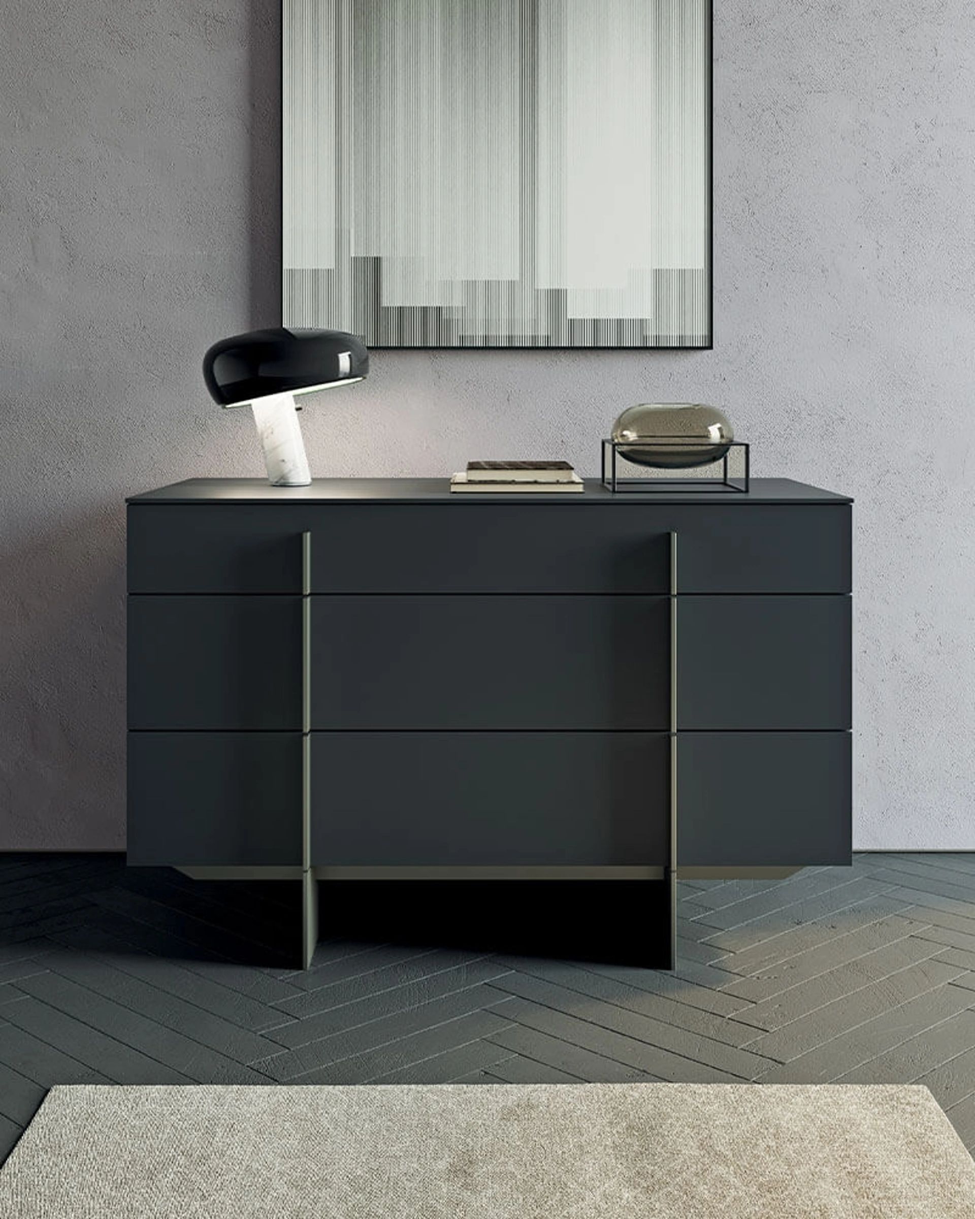 I Comodini, comò e gruppi notte possono essere abbinati al letto e al guardaroba o possono essere in equilibrato contrasto con essi: l'acquisto si baserà sulle vere disponibilità di spazio e sulla ricerca di un equilibrato effeto finale. Valorizza i tuoi spazi garantendoti molta praticità, spazio contenitivo e uno stile unico!. Il Comò Katana di Dall'Agnese è una tra le più belle soluzioni capaci di apportare un accento di stile aggiuntivo alla camera da letto, con l'uso di materiali di pregio.