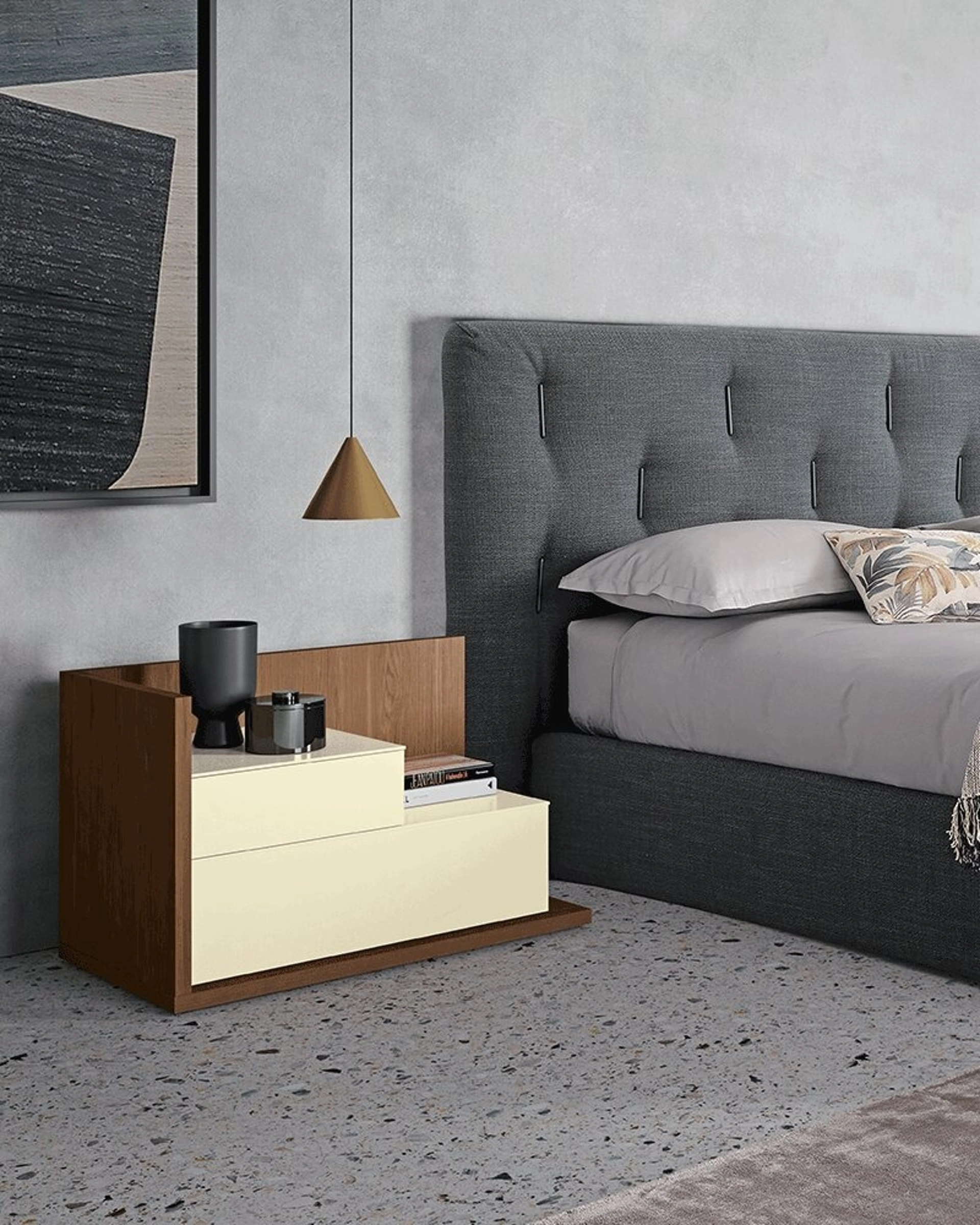 Ottimizza i tuoi locali scegliendo composizioni di oggetti coordinati oppure ricrea esteticamente gradevoli accostamenti di stile e tonalità con il catalogo di mobili ed elementi accessori per la zona del riposo che proponiamo, come il modello in laccato opaco visibile in foto, anche realizzabili su misura per te. Con i nostri gruppi notte moderni della firma Dall'Agnese, specialista dell’Arredamento Casa per la zona del riposo, potrai ricreare la zona notte che hai sempre voluto. Gruppo notte Slim Open di Dall'Agnese: contattaci e scopri di più sulle nostre proposte d'arredo e arreda la camera come l'avevi immaginata. La zona del riposo contiene anche i Comodini: mobili per contenere indispensabili che offrono l'opportunità di riporre oggetti e potere ususfruire di piani di appoggio per diversi usi.