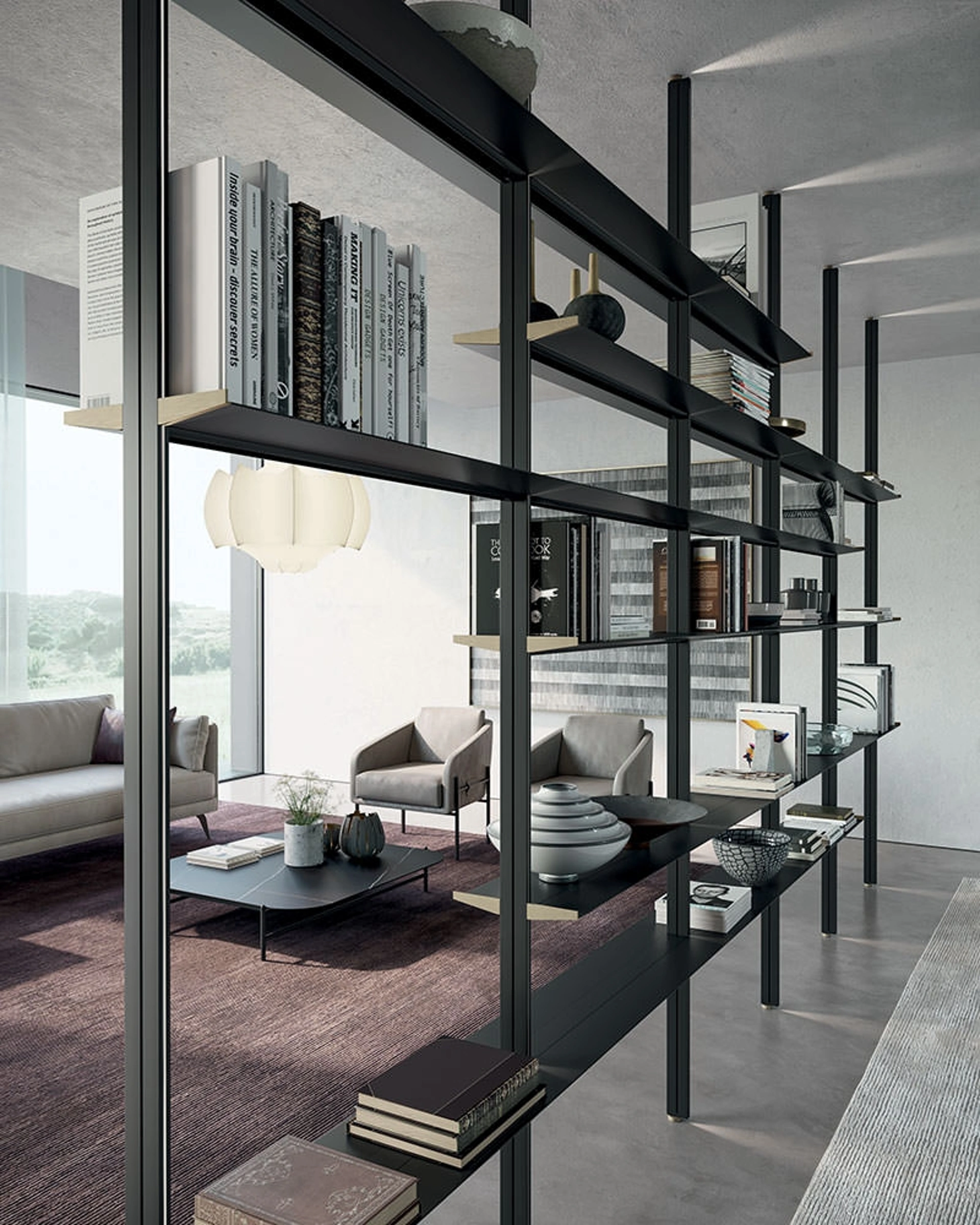 Potrai utilizzare questi mobili come un piano d'appoggio plurifunzionale, per riporci sia oggetti d'uso quotidiano, sia prettamente decorativo. Contattando i nostri arredatori potrai avere info di ogni tipo sulla Libreria modulare bifacciale Bamboo di Dall'Agnese qui presente. Scopri le più esclusive soluzioni salvaspazio, come ilmobile soggiorno in foto in metallo, e dai vita al living dinamico e operativo che hai sempre voluto. Il noto e conosciuto marchio produce Librerie divisorie design in un'infinità di conformazioni, misure, texture e tonalità per assicurare la massima poliedricità.