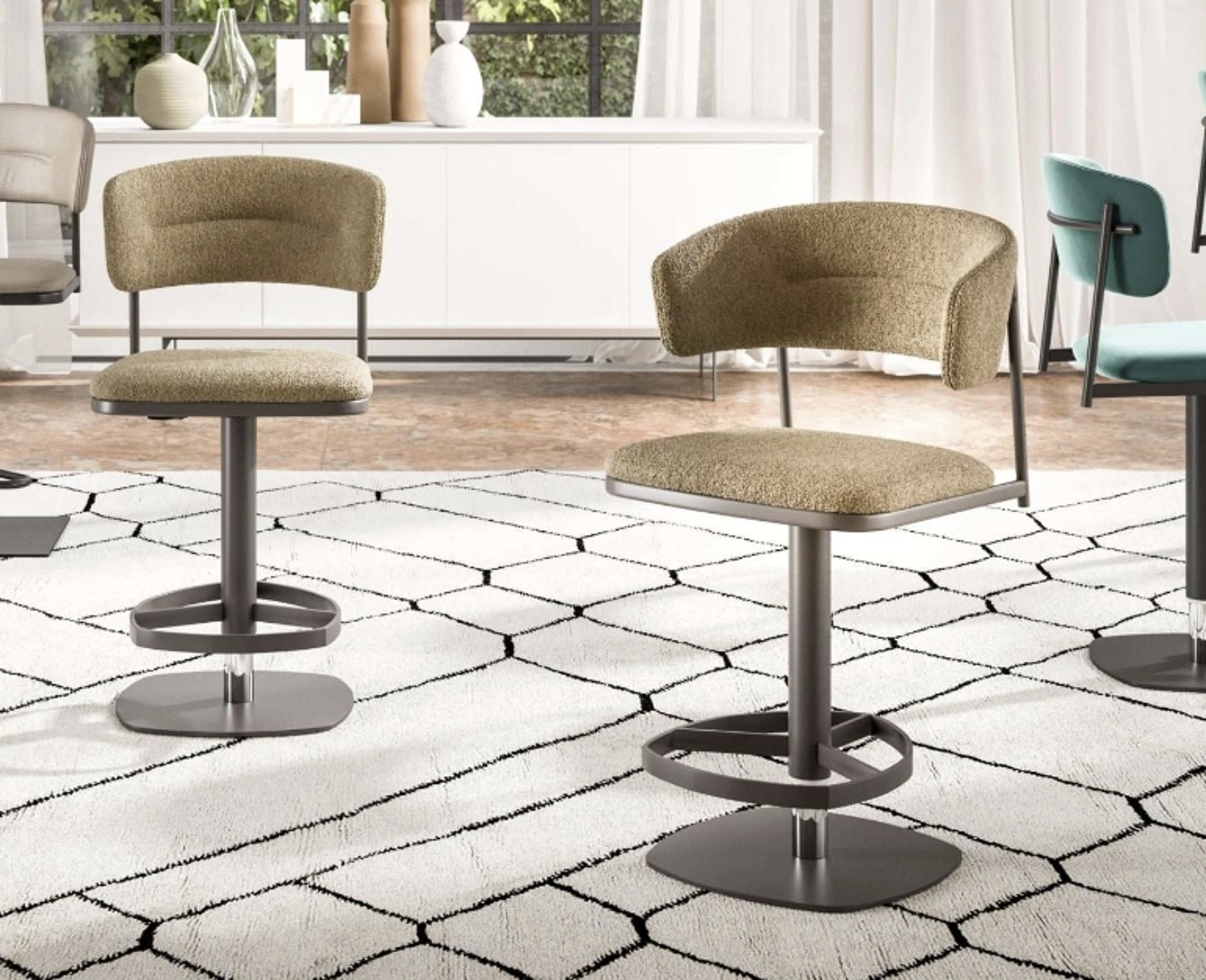 Oltre ad essere veramente comoda e ergonomica, questa sedia in tessuto ti assicurerà una serena quotidianità nei locali dove ci si ritrova con familiari e amici. In negozio potrai toccare con mano le più belle proposte sul mercato, tra cui anche quelle da cucina moderne firmate dal noto e rinomato brand Ozzio. Le sedie costituiscono tra i mobili e oggetti accessori immancabili in ogni casa, per tale ragione disponiamo nel nostro punto vendita di una vasta offerta di soluzioni da scegliere basandoti sulle tue preferenze. Sgabello in tessuto Petra di Ozzio in tessuto: saprà attrezzare ottimamente la sala da pranzo o il living della tua abitazione, mixando doti di praticità e design. Ogni soluzione Ozzio garantisce una buona resa estetica indipendentemente dal locale cui è destinato, poiché organizza gli spazi arricchendone l'estetica.