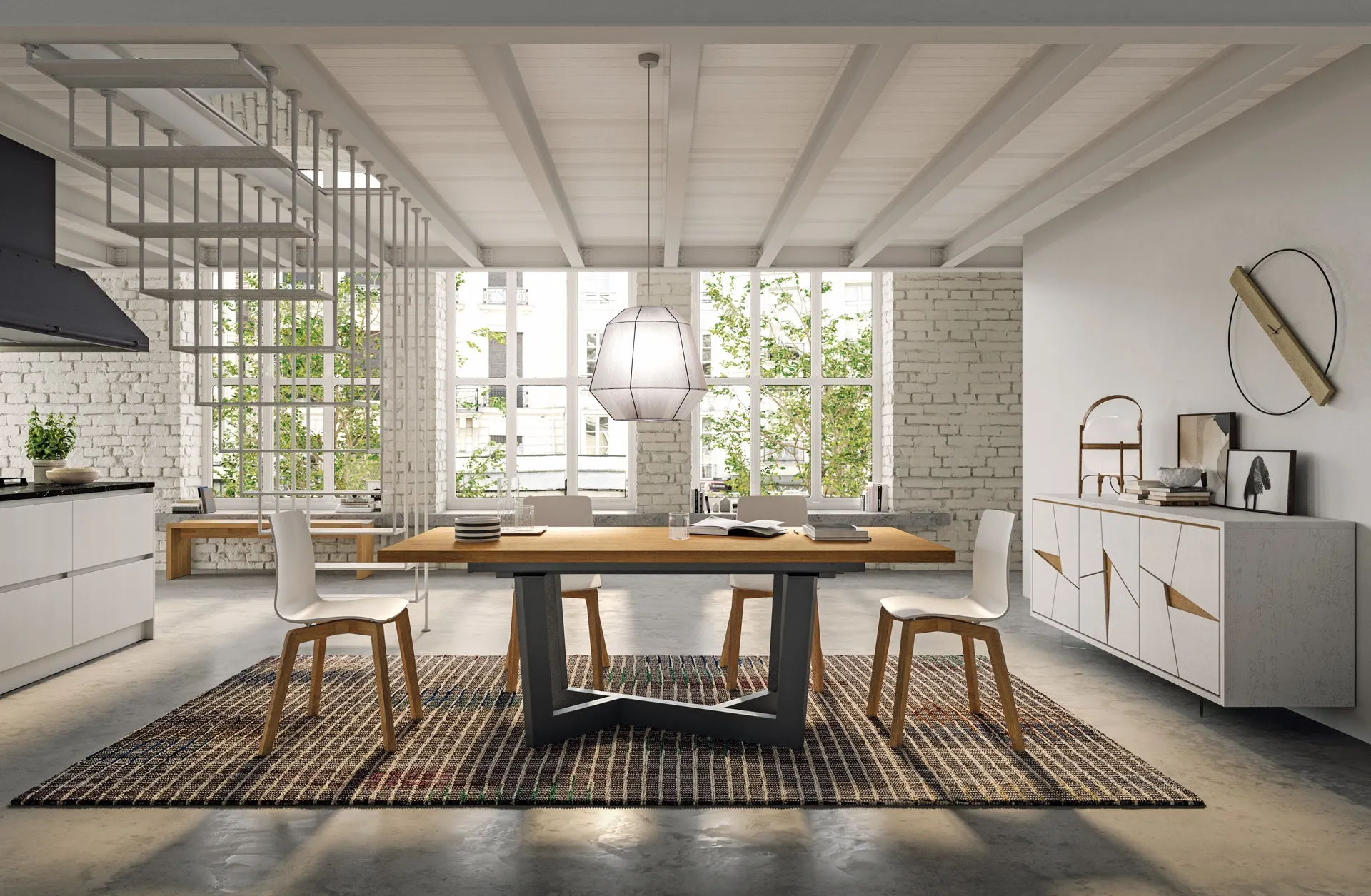 L'acquisto dei Tavoli da pranzo È fondamentale se vuoi completare il proprio Arredamento Casa: vanno tenuti in considerazione gli spazi disponibili, gli accostamenti di colore e i materiali. Contattaci per info e preventivi o puoi vedere in negozio tutte le più originali proposte da pranzo in legno di FGF Mobili, esempio di tutta l'eccellenza assicurata dal marchio. In showroom troverai un ricco catalogo di mobili ed elementi accessori in legno dei migliori brand, ideali per completare i tuoi spazi. Tavolo Rio estensibile in legno con base in metallo di FGF Mobili: con questo modello potrai valorizzare spazi moderni assicurandoti l'alta componibilità e la massima personalizzazione dei tavoli allungabili.