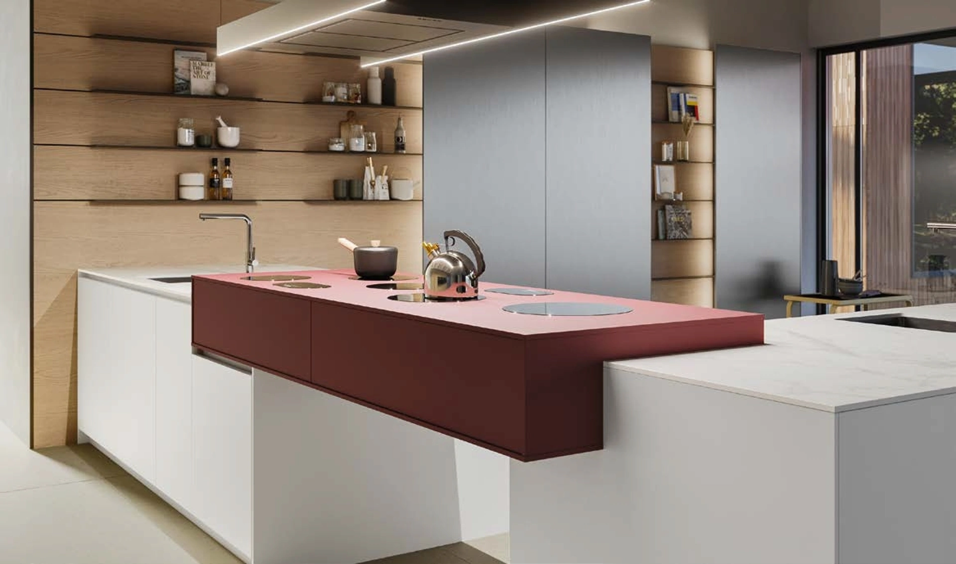 Doimo Cucine è il marchio specializzato nella costruzione di mobili attuali, con cui tutta la clientela può sbizzarrirsi in quanto a finiture, forme e gamma di colori. Se vuoi ammobiliare la tua abitazione con mobili ed elementi accessori di ottima fattura, il suggerimento da parte nostra è quello di acquistare la Cucina Design con isola D12 e D23 Progetto 2 di Doimo Cucine. Le Cucine Design in laminato mantengono le doti estetiche originali durante gli anni, assicurando un'ottima estetica a completamento delle doti di funzionalità. La progettazione è uno dei fattori basilari da considerare prima di comprare delle cucine con penisola in stile design come quella qui visibile.