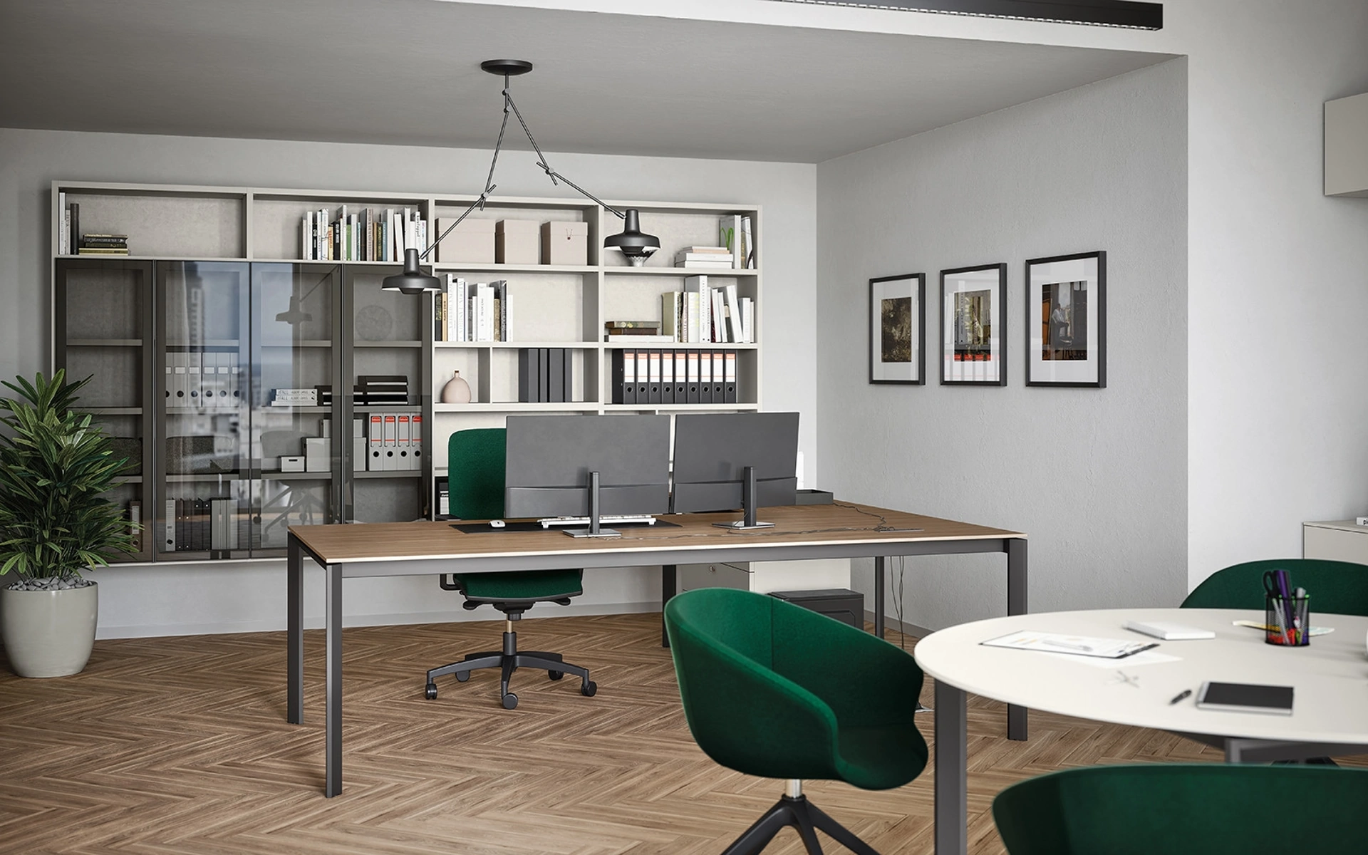 Materiali di prima scelta, un certo stile e linee ben studiate connotano la ricca collezione di mobili per gliambienti lavorativi del brand Cinquanta3. Nel nostro punto vendita presentiamo diverse composizioni arredative con scrivanie direzionali Cinquanta3 in melaminico, sempre in materiali durevoli e resistenti negli anni. Al giorno d'oggi l’Arredo Ufficio deve rispondere a le esigenze di funzionalità e comfort per chi lavora, quelle di accoglienza e serietà soprattutto per i clienti. Il noto e rinomato brand si muove sempre al passo con le necessità individuali, infatti mette a disposizione ogni sorta di Arredo Ufficio in melaminico.